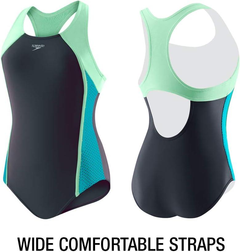 Speedo Girl’s Swimsuit One Piece Closed Racerback(Asphalt)