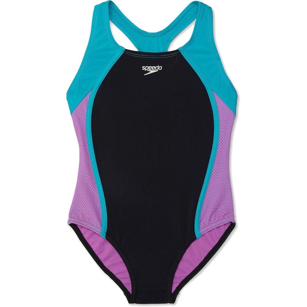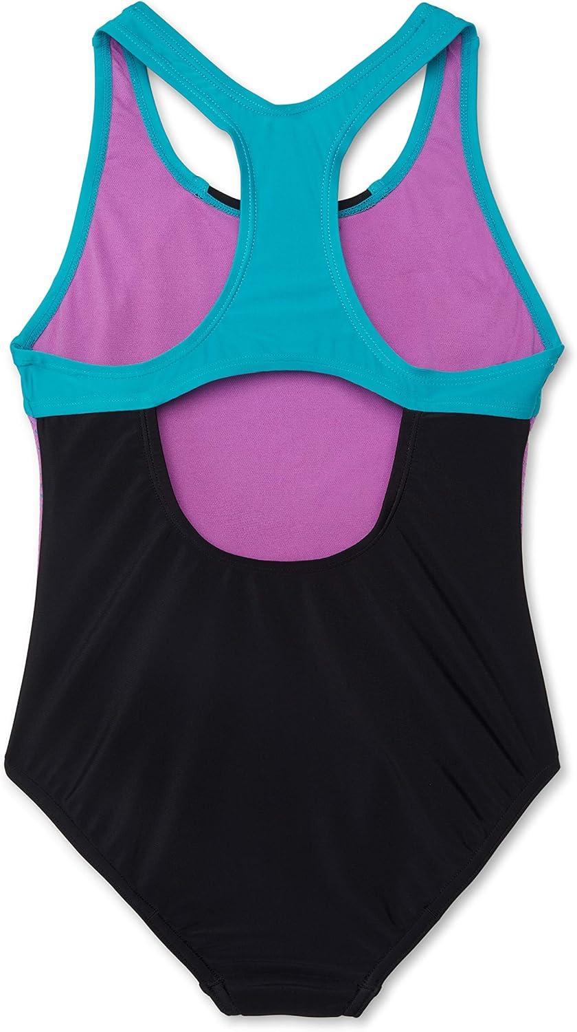 She'll love swimming in this splice suit. Chlorine-resistant fabric ensures the colorful style lasts the entire season, while racerback straps deliver a comfortable fit. The one-piece is finished with Block the Burn UV 50+ to keep her safe from the harsh sun.