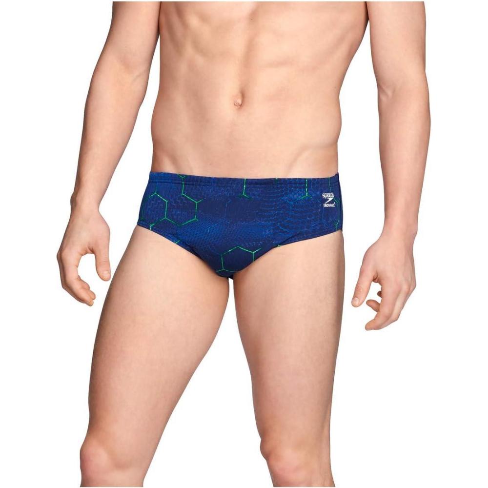 Speedo Men’s Caged Out Brief Endurance+ Swimsuit(Emerging Blue/Green)