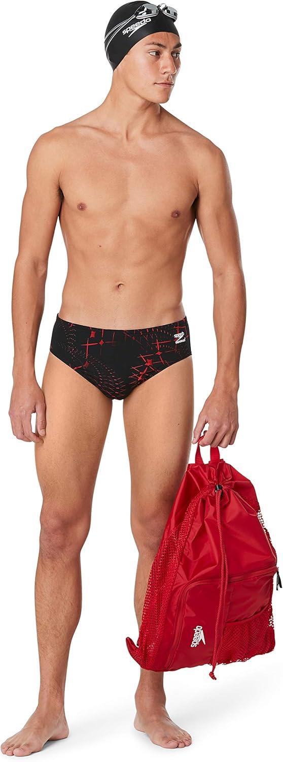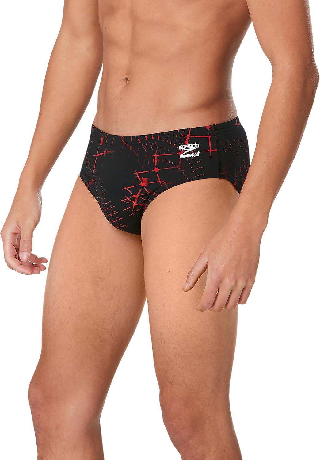 Speedo Men’s Caged Out Brief Endurance+ Swimsuit(Galactic Speedo Red)