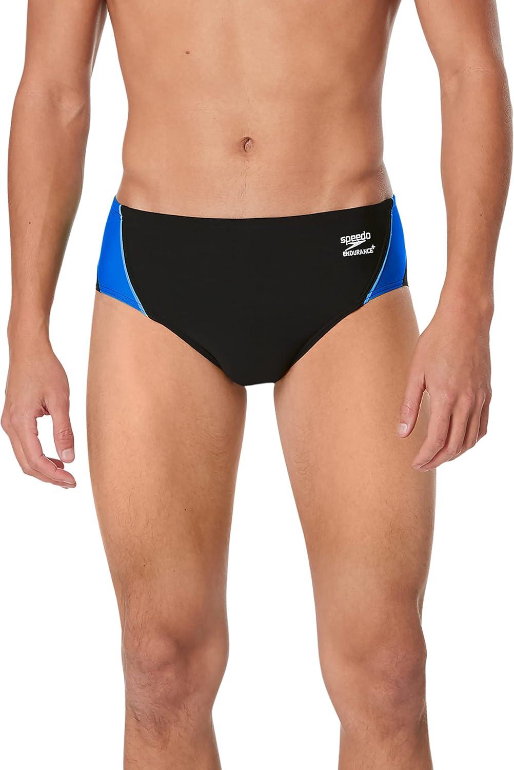 Speedo Men’s Poly Mesh Square Leg Swimsuit(Black/Blue Splice)