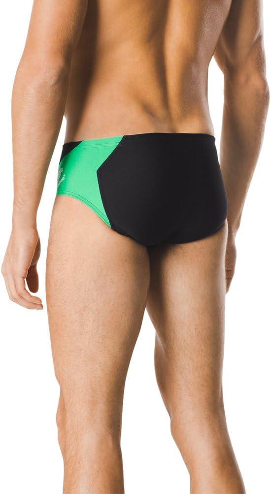 Speedo Men’s Poly Mesh Square Leg Swimsuit(Black/Green Splice)