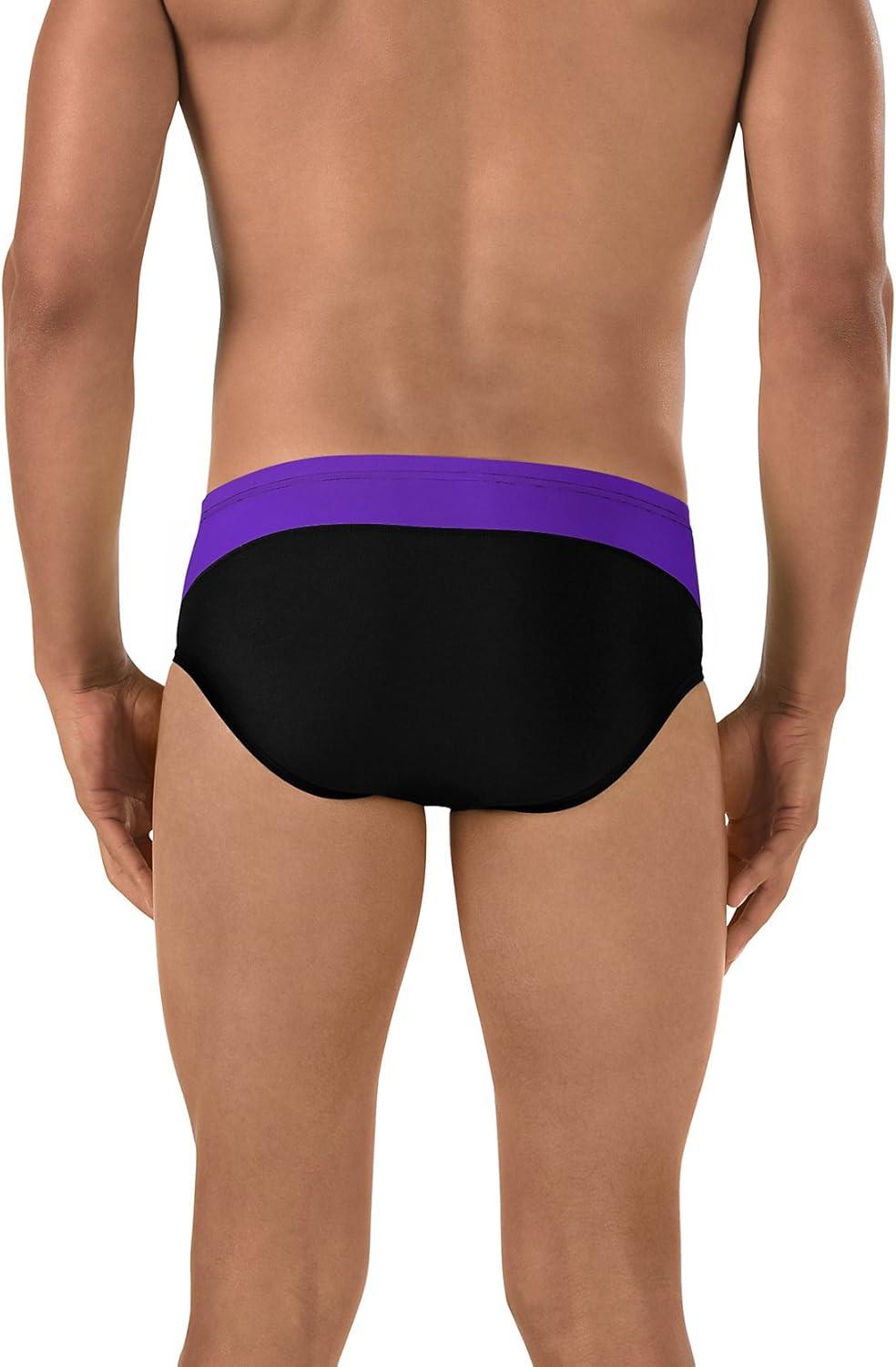 Speedo Men’s Poly Mesh Square Leg Swimsuit(Black/Purple Splice)