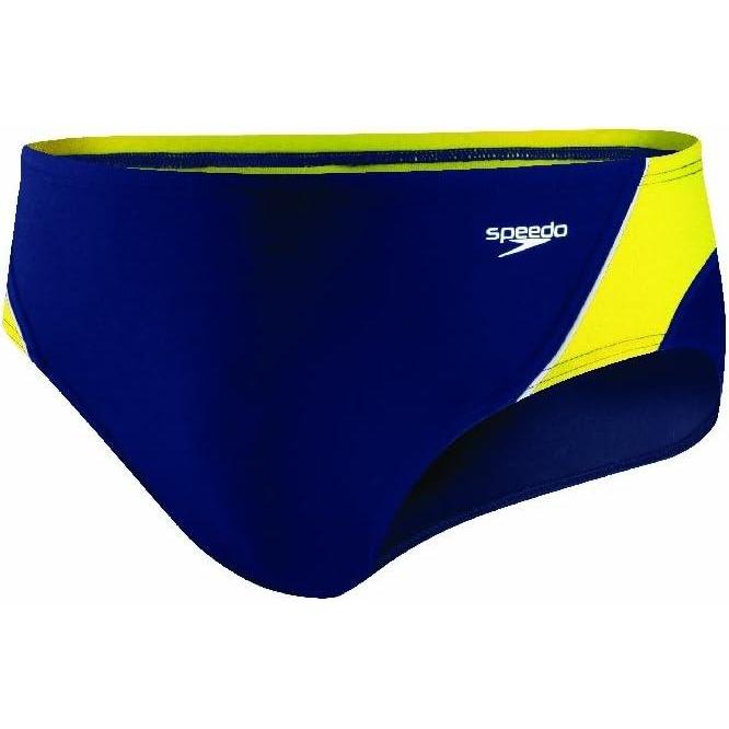 Speedo Men’s Poly Mesh Square Leg Swimsuit(Navy/Gold Splice)