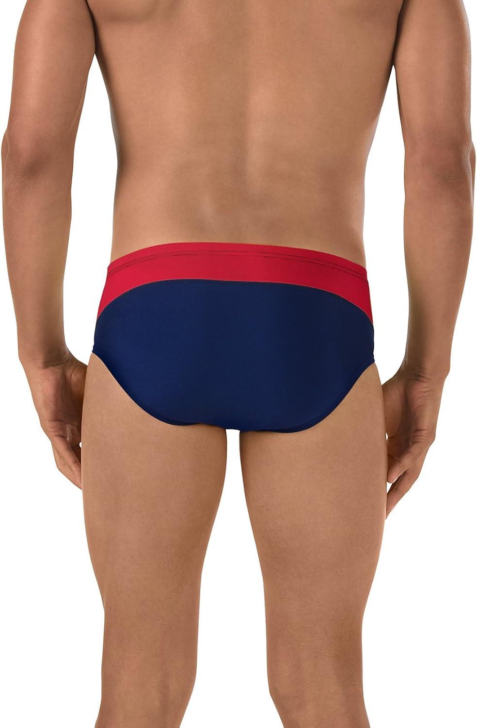 Speedo Men’s Poly Mesh Square Leg Swimsuit(Navy/Red/White Splice)