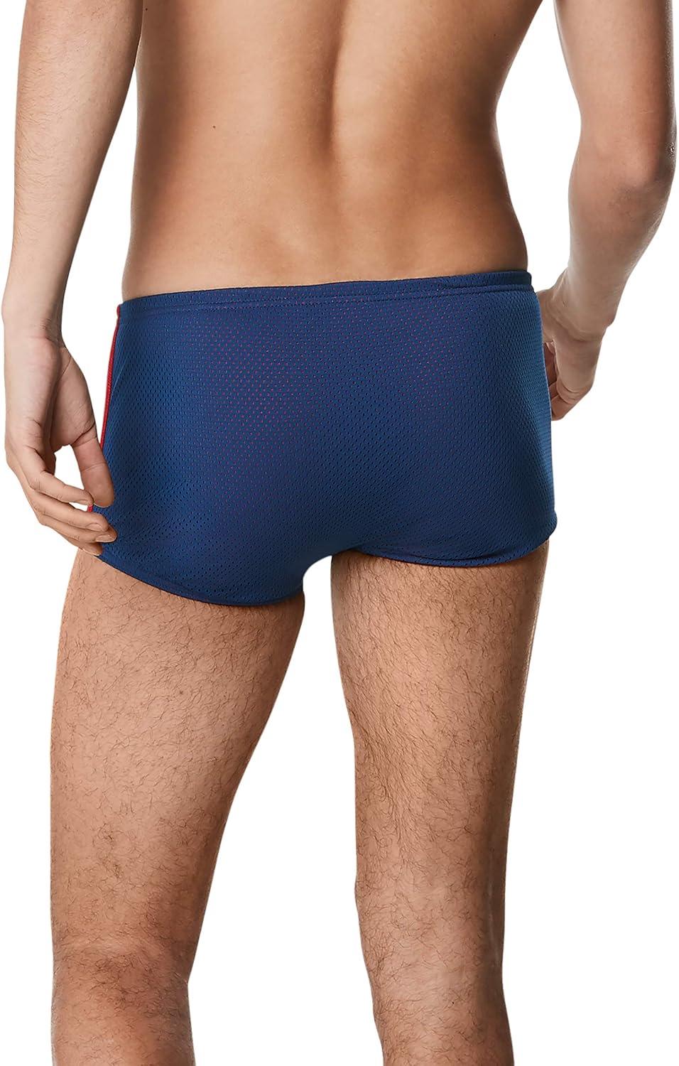 Speedo Men’s Poly Mesh Square Leg Swimsuit(Navy/Red)