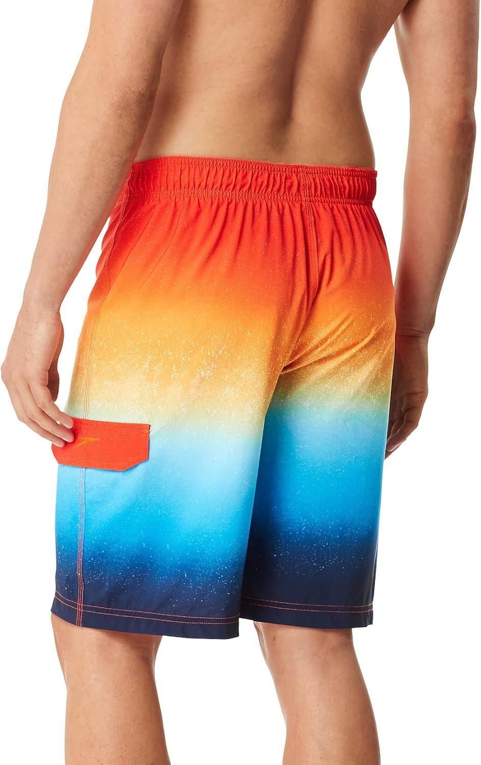 Speedo Men’s Swim Trunk Knee Length Boardshort E-Board Printed-Discontinued(Ombre Electric Orange)