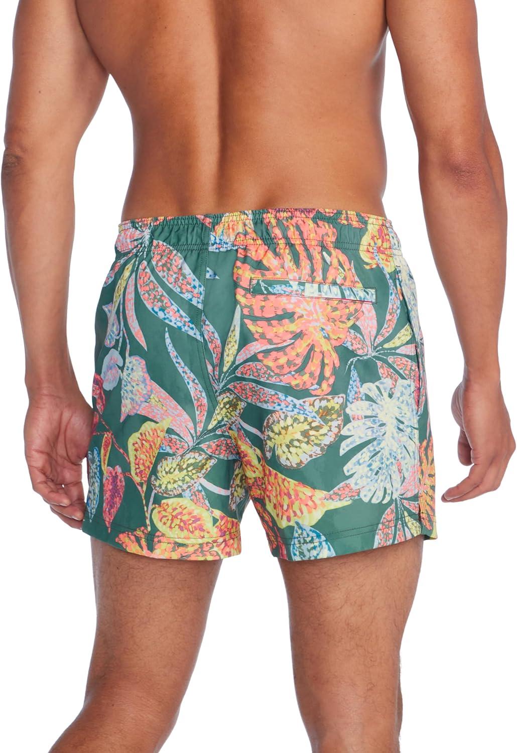 Speedo Mens Swim Trunk Short Length Redondo Striped(Flecked Floral)