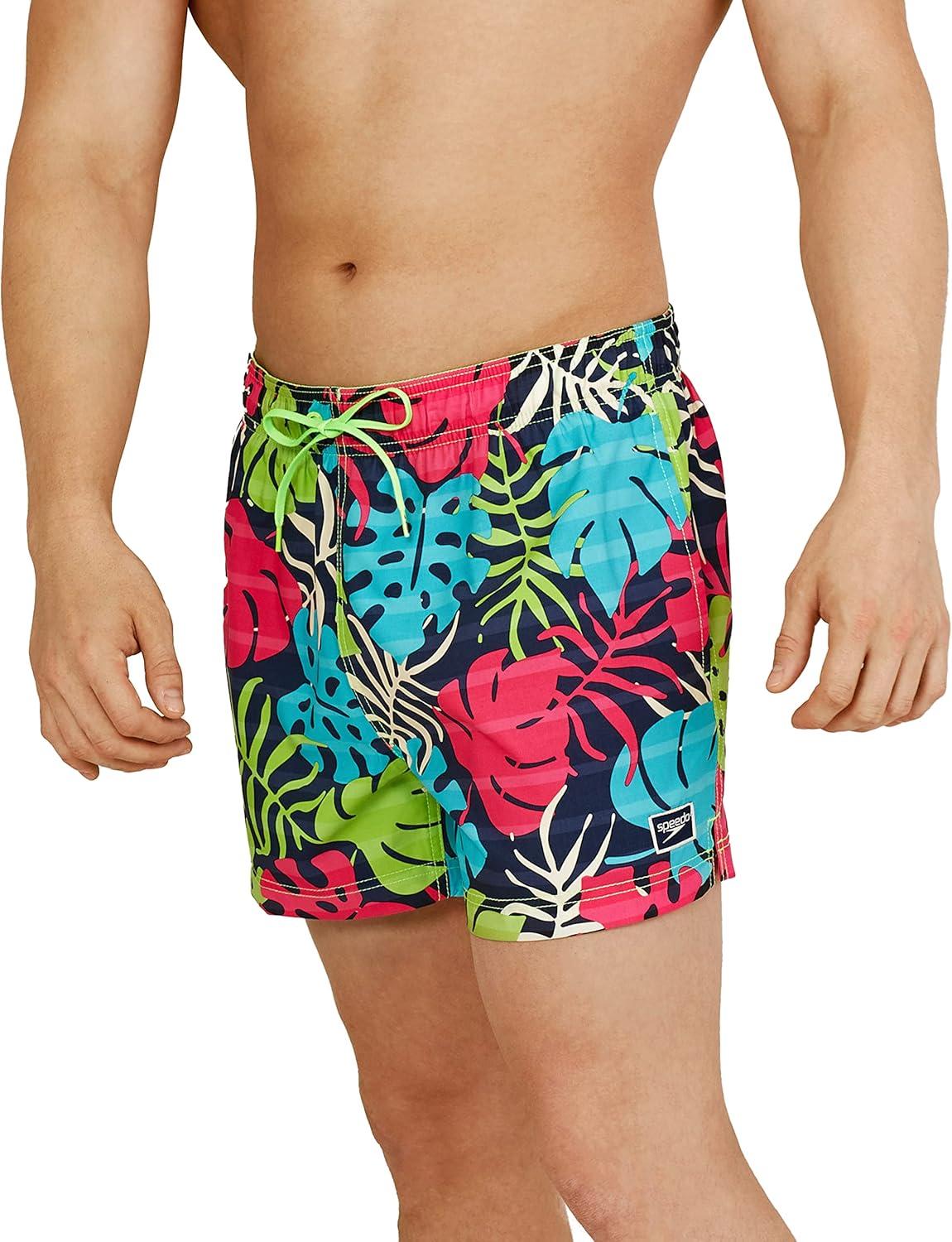 imageSpeedo Mens Swim Trunk Short Length Redondo StripedPalm Blue Atoll