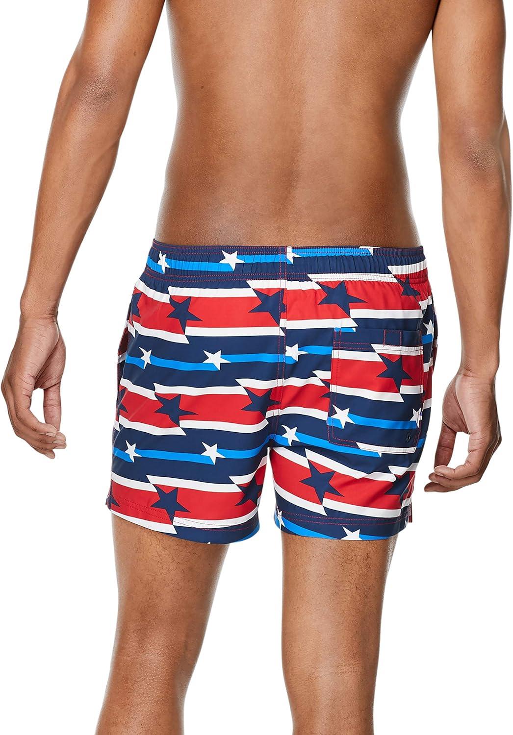 Speedo Mens Swim Trunk Short Length Redondo Striped(Red White Blue)