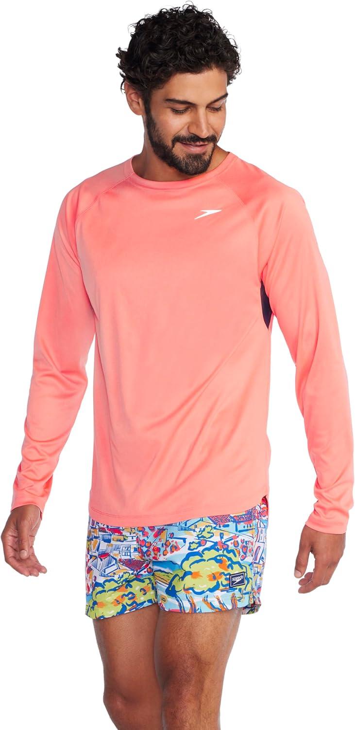 Speedo mens Uv Swim Shirt Long Sleeve Fitness Rashguard(Cupid Coral)