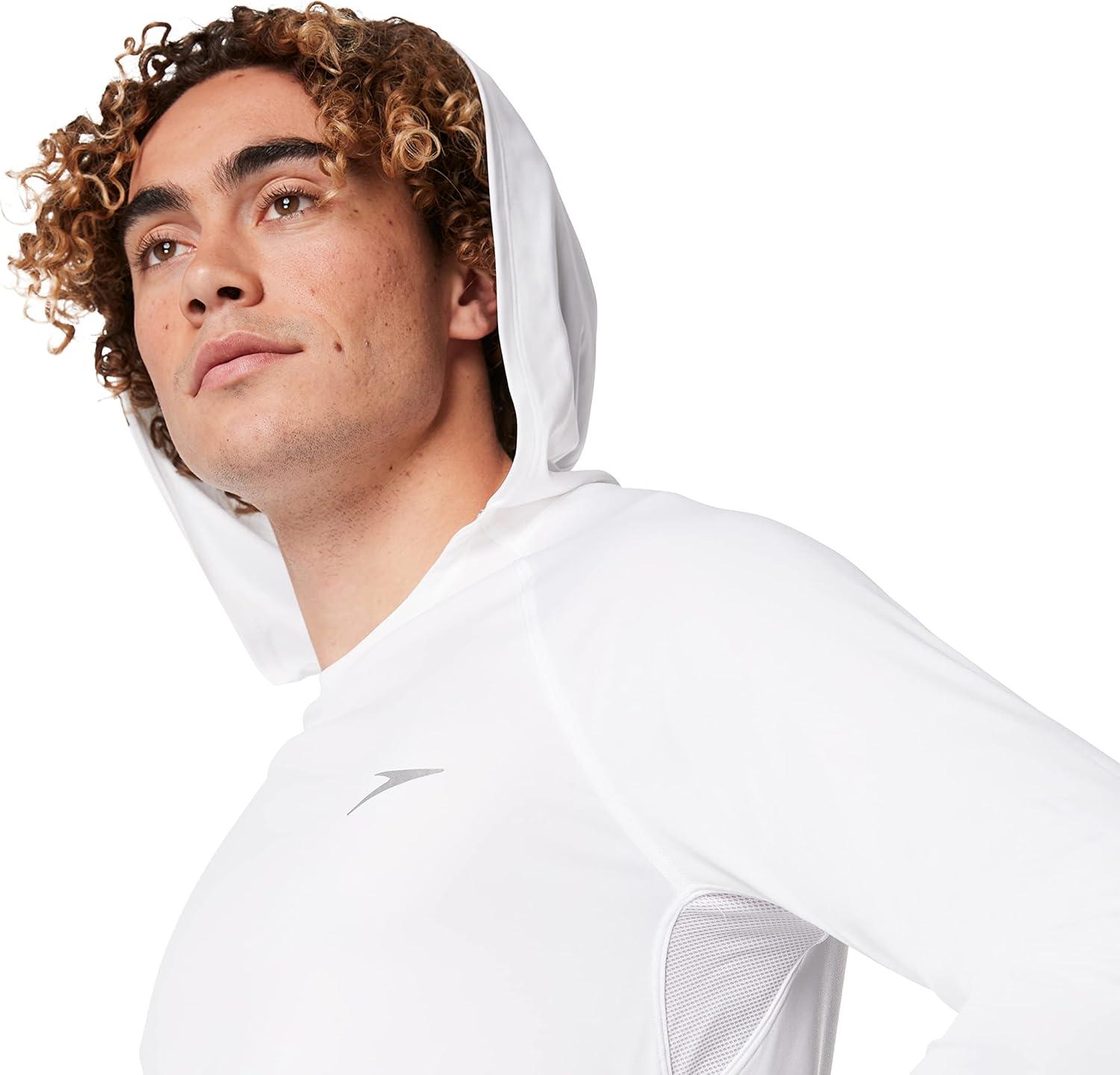 Speedo Mens Uv Swim Shirt Long Sleeve Fitness Rashguard(Hooded White)