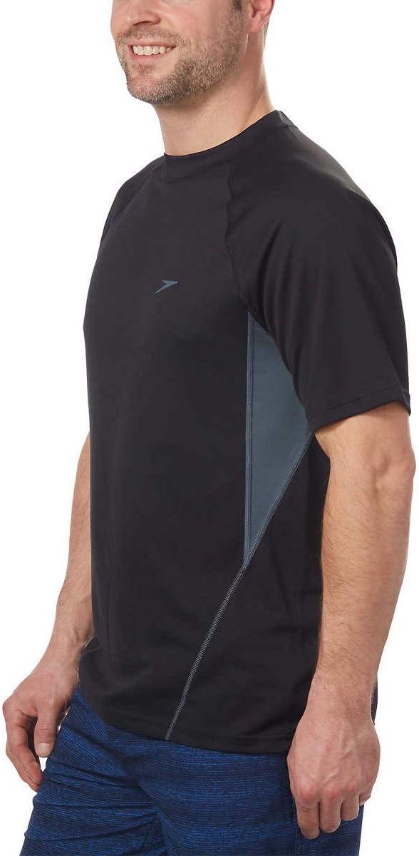 Speedo Mens Uv Swim Shirt Short Sleeve Fitness Rashguard(Black)