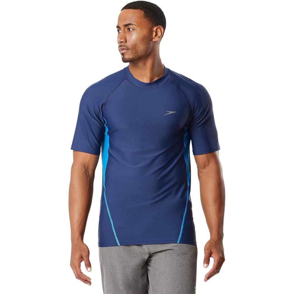 Speedo Mens Uv Swim Shirt Short Sleeve Fitness Rashguard(Speedo Navy)