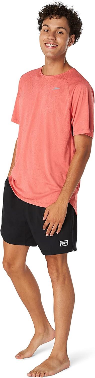 Speedo Mens Uv Swim Shirt Short-Sleeve Loose Fit Easy Tee(High Risk Red)