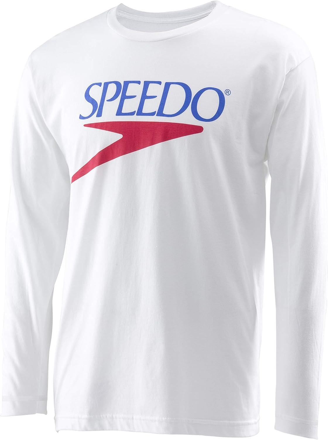 Speedo Unisex-Adult T-Shirt Long Sleeve Crew Neck Vintage(New White)