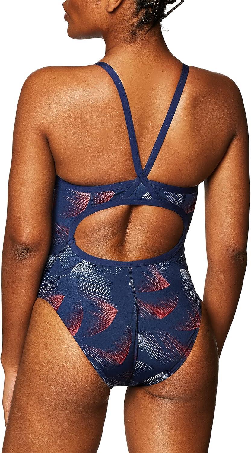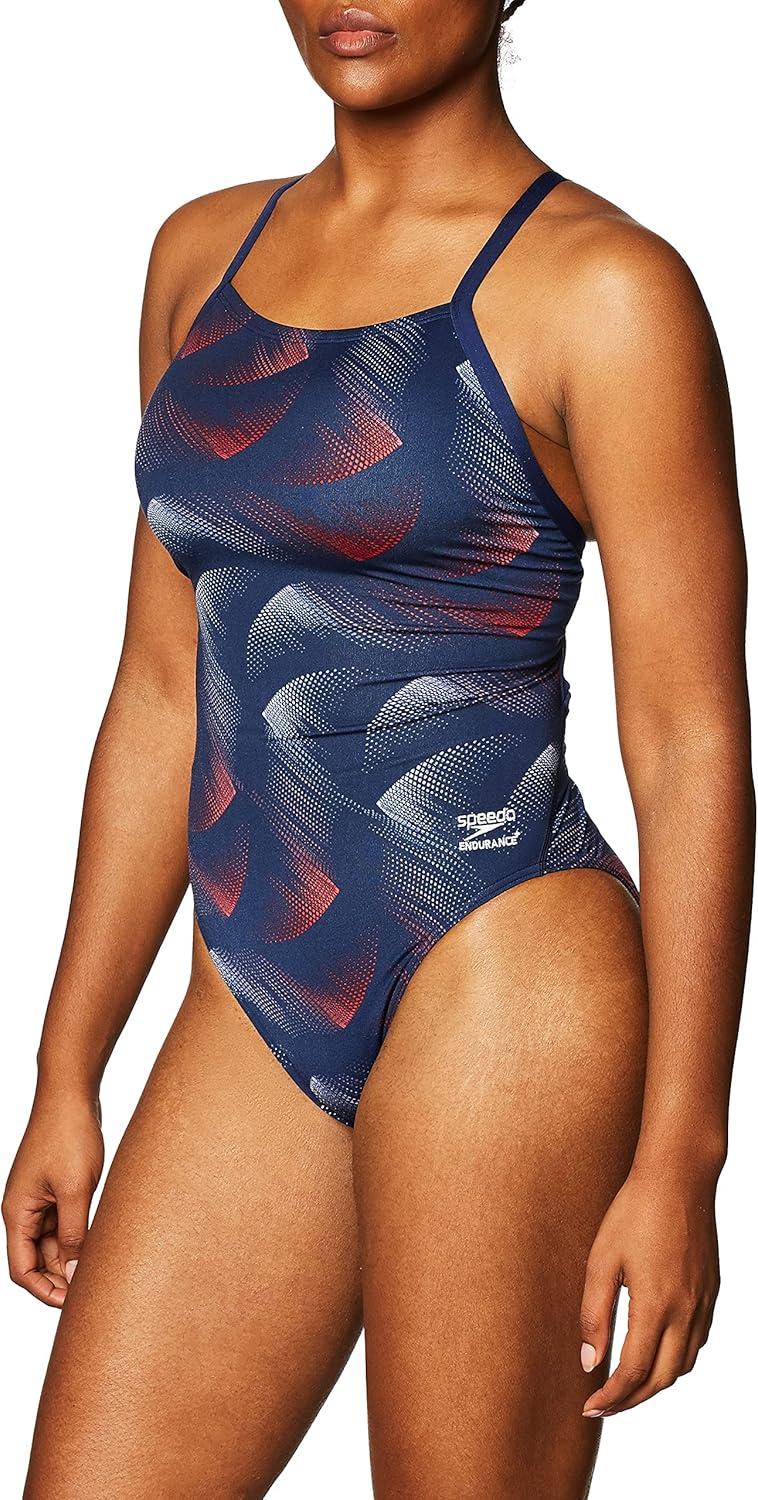 Speedo Woemns Swimsuit One Piece Endurance+ Flyback Printed Adult Team Colors(Beta Red/White/Blue)