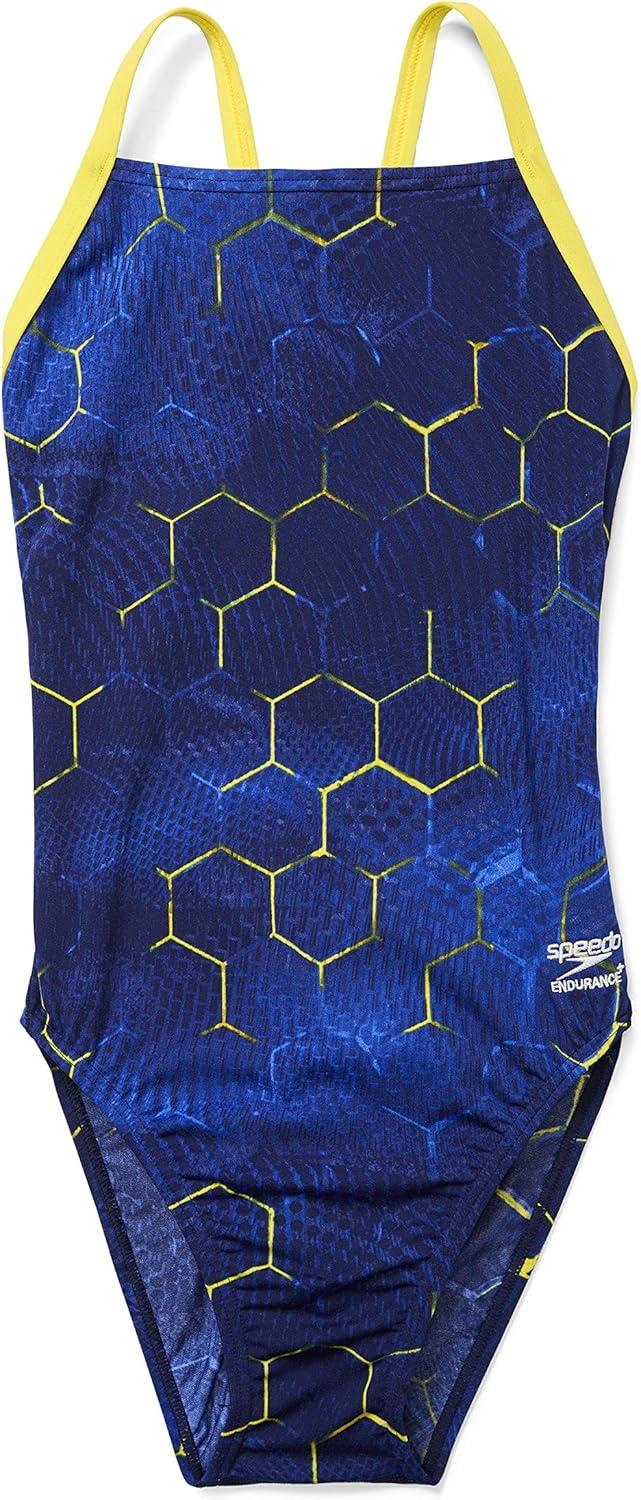 Speedo Woemns Swimsuit One Piece Endurance+ Flyback Printed Adult Team Colors(Emerging Navy/Gold)
