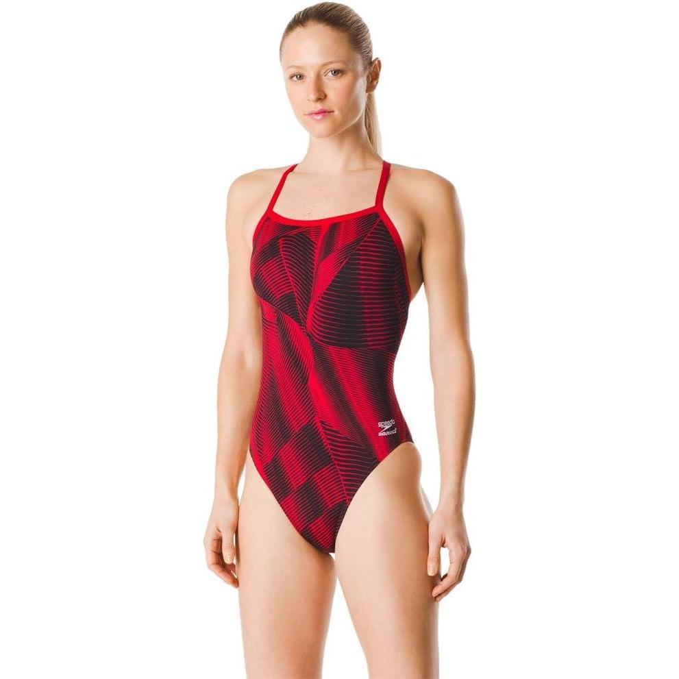 Speedo Woemns Swimsuit One Piece Endurance+ Flyback Printed Adult Team Colors(Fierce Speedo Red)