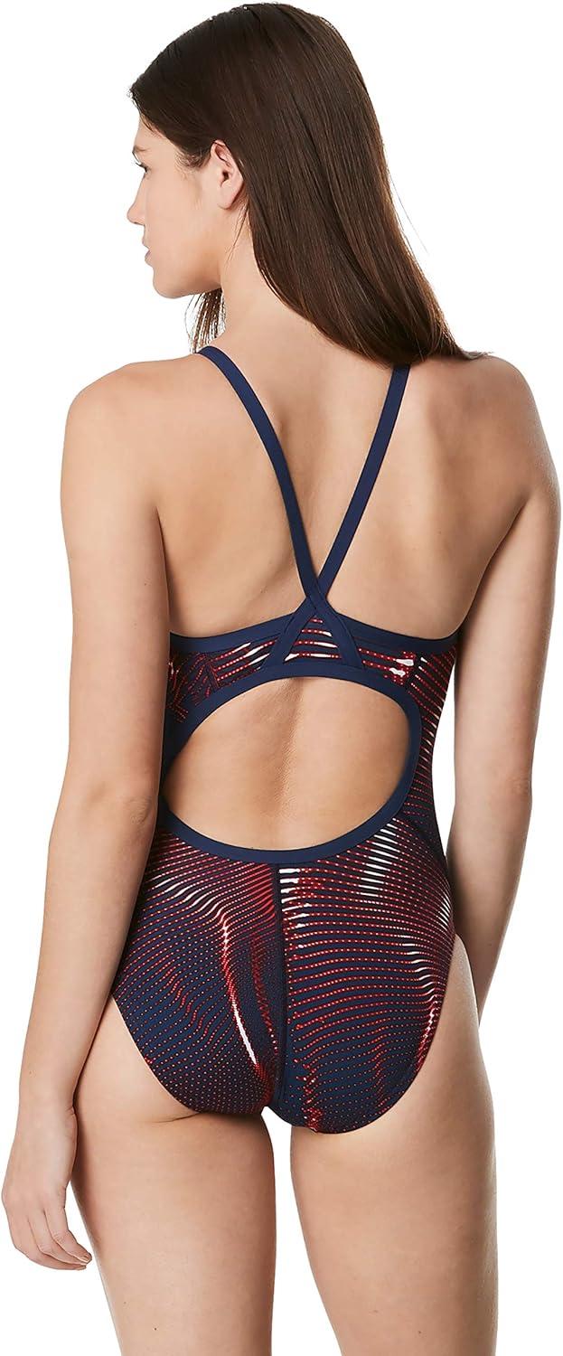 Speedo Woemns Swimsuit One Piece Endurance+ Flyback Printed Adult Team Colors(Solar Red/White/Blue)