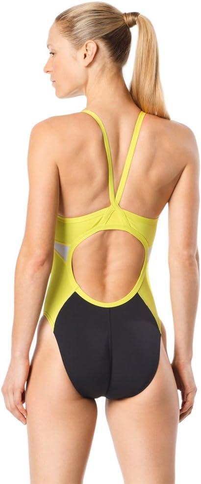 Speedo Woemns Swimsuit One Piece Endurance+ Flyback Printed Adult Team Colors(Spark Black/Yellow)