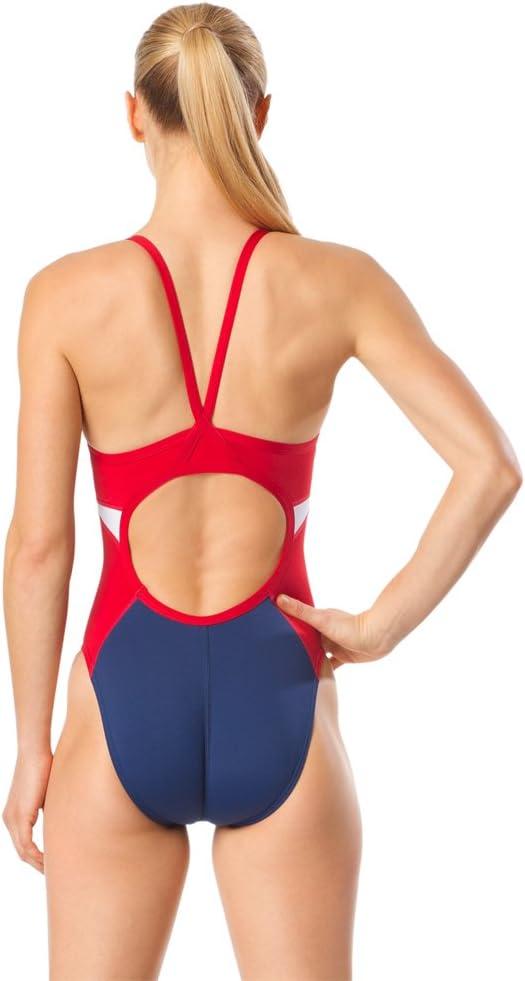 Speedo Woemns Swimsuit One Piece Endurance+ Flyback Printed Adult Team Colors(Spark Navy/Red)