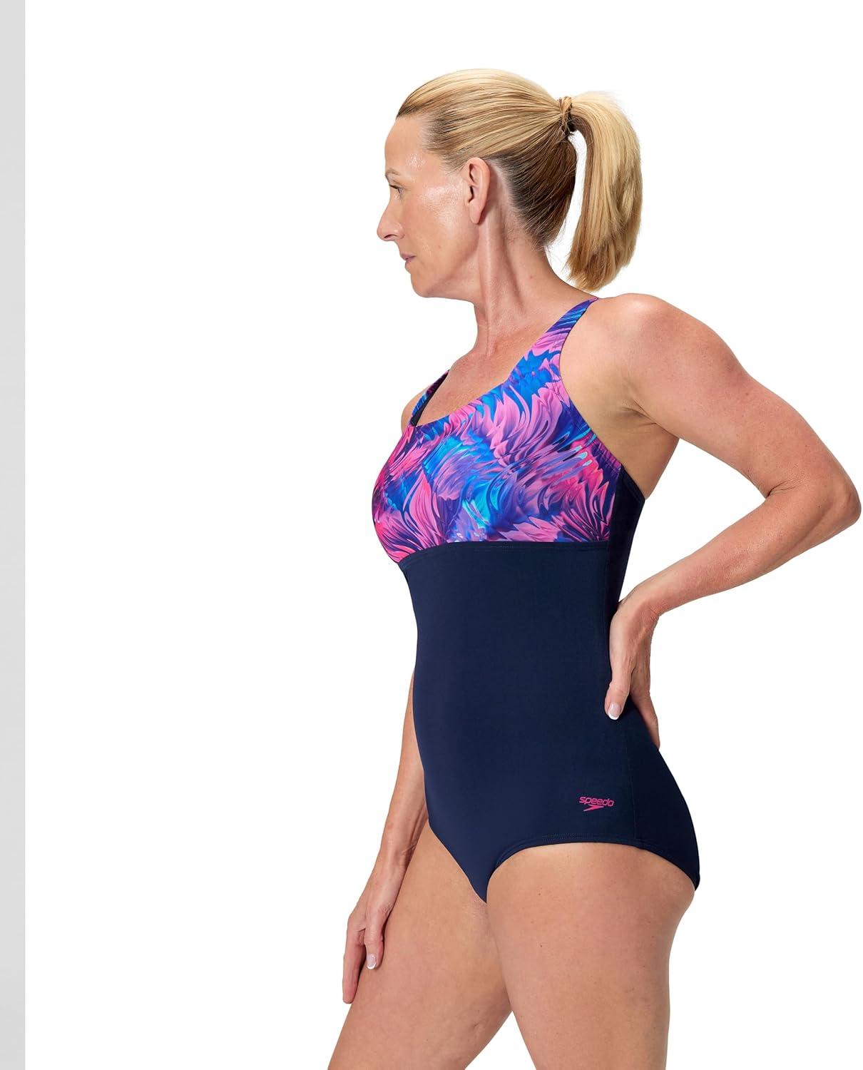 imageSpeedo Womens Endurance Color Top One Piece SwimsuitGlass Petals Peacoat