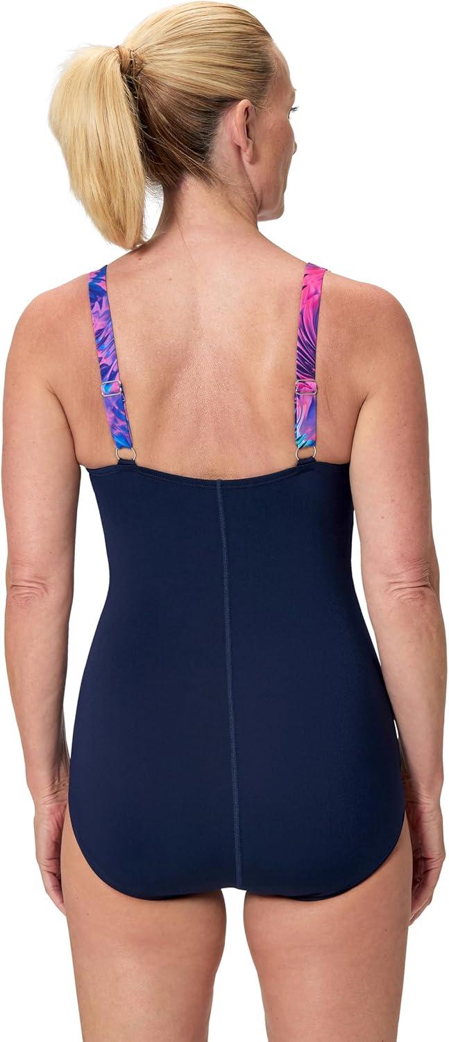 Speedo Women’s Endurance+ Color Top One Piece Swimsuit(Glass Petals Peacoat)