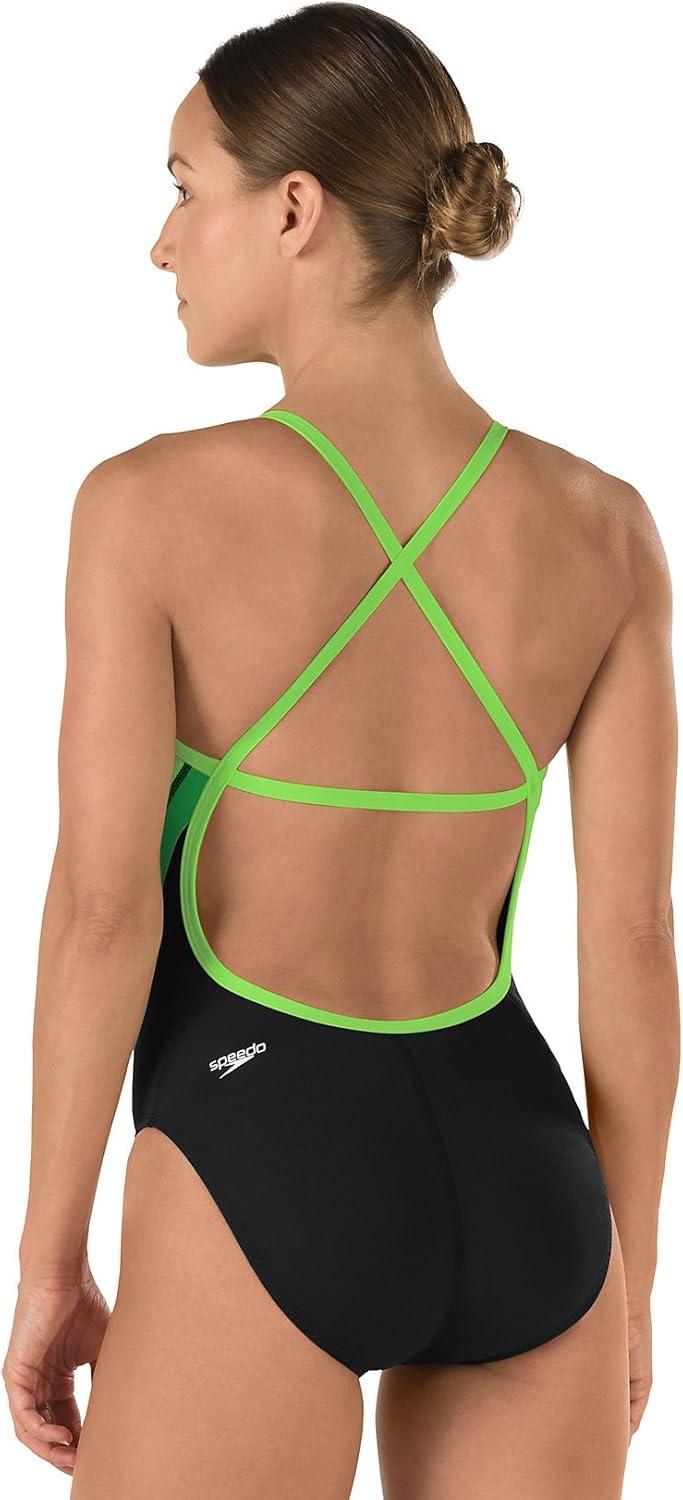 Speedo Womens Swimsuit One Piece Endurance+ Cross Back Solid Adult Team Colors(Black/Green)