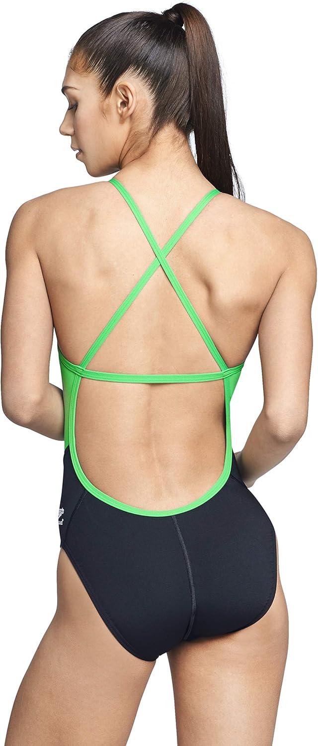 Speedo Womens Swimsuit One Piece Endurance+ Cross Back Solid Adult Team Colors(Spark Black/Green)