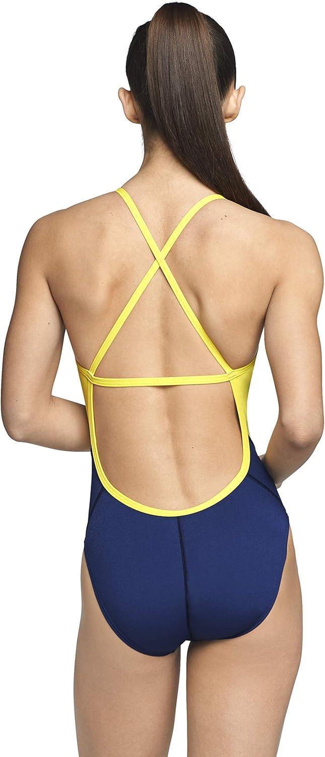 Speedo Womens Swimsuit One Piece Endurance+ Cross Back Solid Adult Team Colors(Spark Navy/Gold)