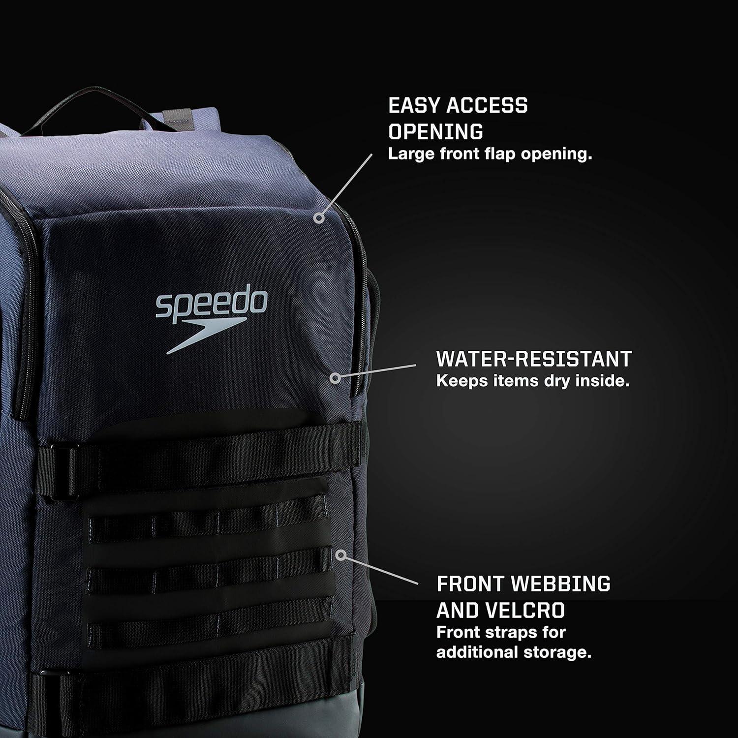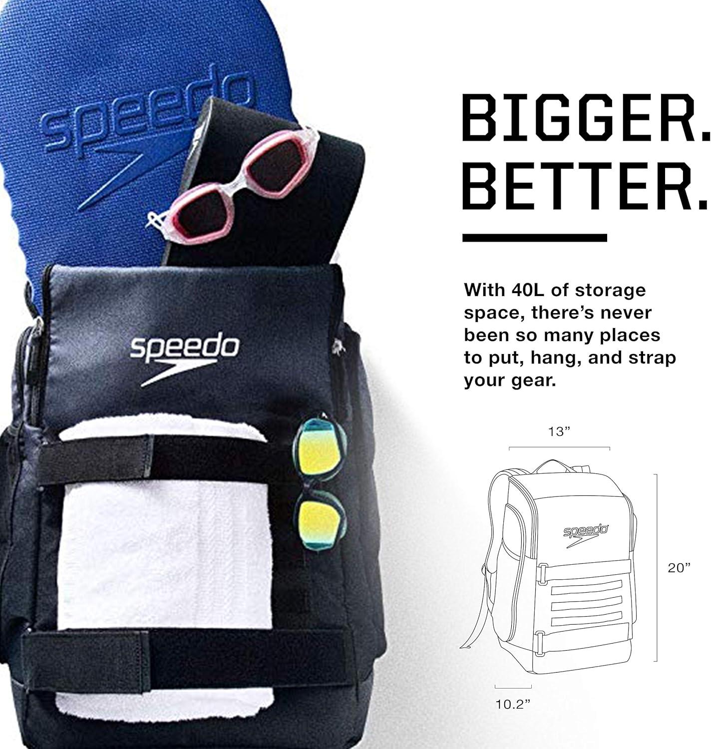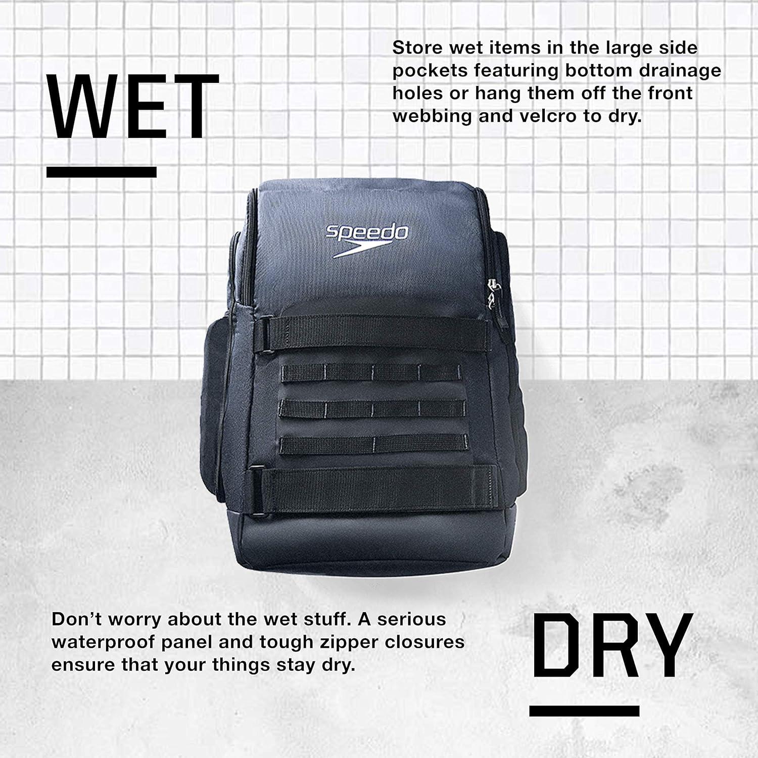 Built tough for swimmers, by swimmers. The functional Teamster Pro backpack is designed to handle all your gear. Anchored by an unlined main compartment, this bag features a side pocket with drainage for storing damp items and another that can hold a large water bottle. Convenient Velcro straps hold foam rollers, towels and more in place so you can be hands free and worry free.
