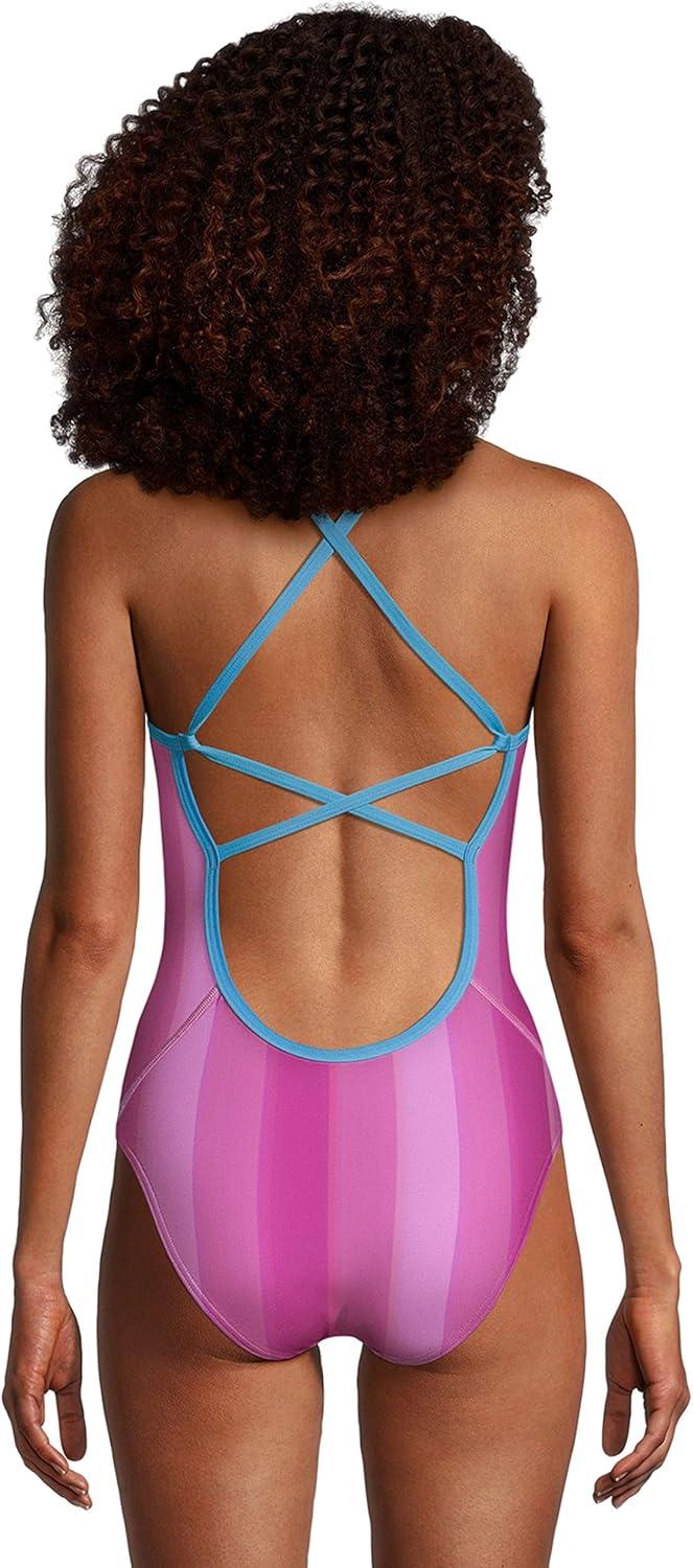 This printed swimsuit brings it on—good vibes, that is. Wear it anywhere, from practice to the beach and in between for a colorful look that'll turn heads. Crisscross straps at the back and full bum coverage define the one-piece style, designed to survive endless hangouts.