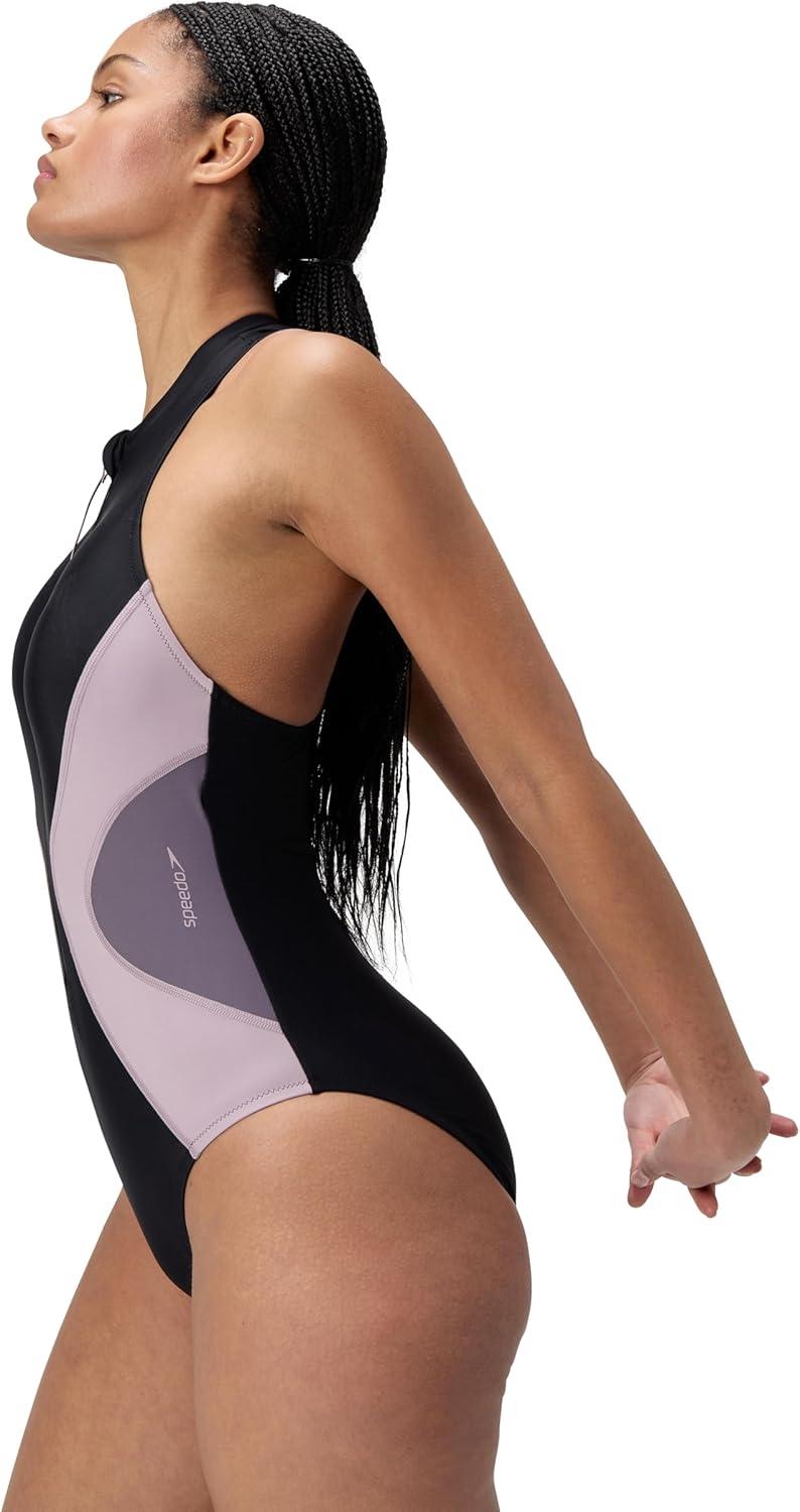Speedo Women’s Swimsuit One Piece Hydraline Standard Cut(Zip Anthracite/Vintage Fog)