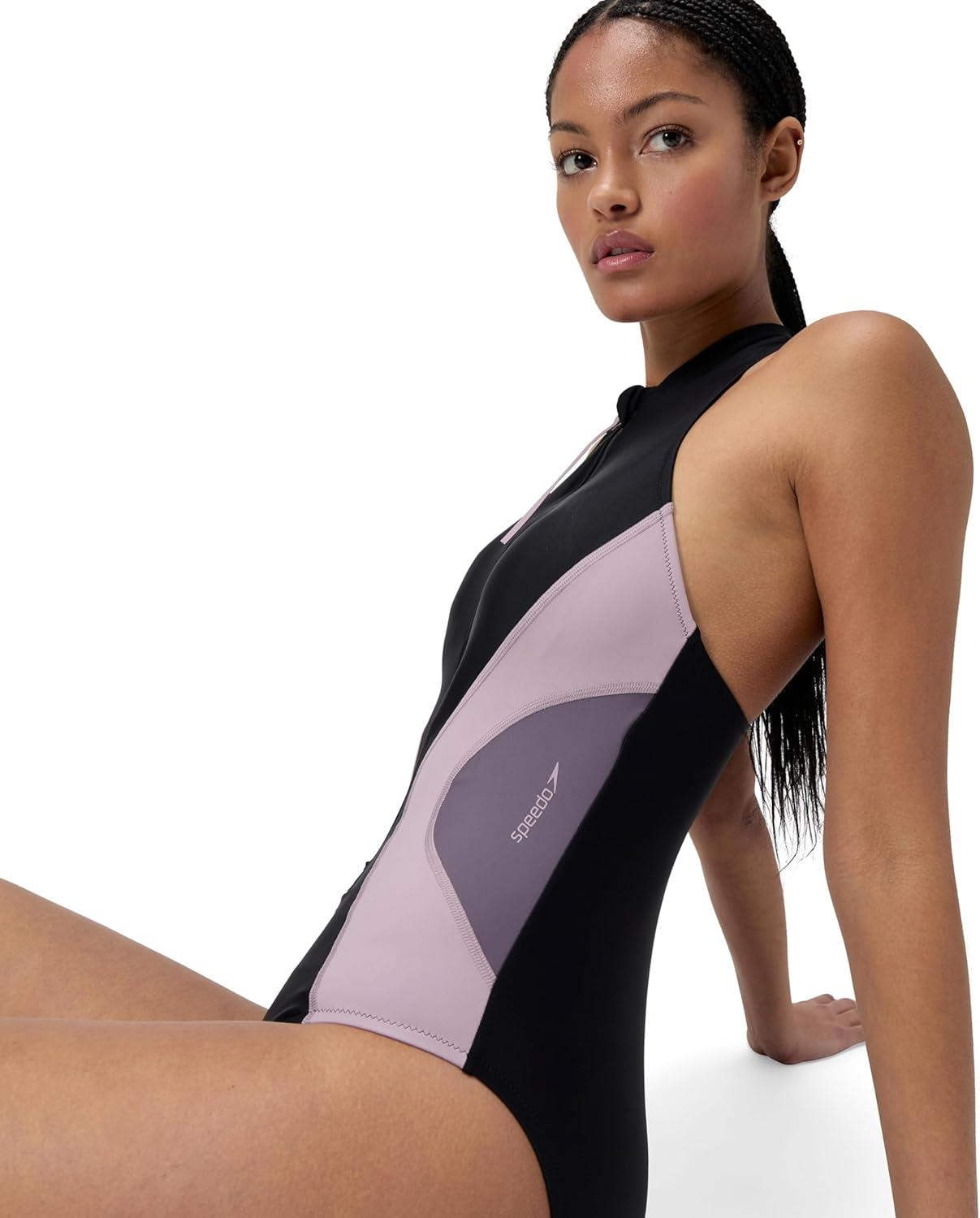 Speedo Women’s Swimsuit One Piece Hydraline Standard Cut(Zip Cb Anthracite)